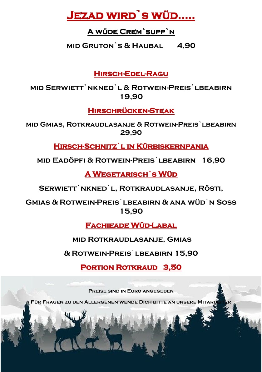 Das Essen ist angerichtet, wenn Ihr nach dem Spiel ins Wirtshaus kommt.