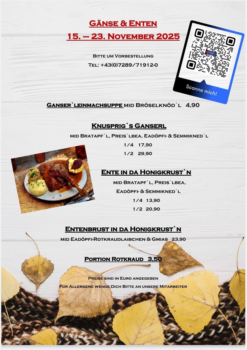 Ausschließlich Bar oder Bankomatzahlungen werden akzeptiert.